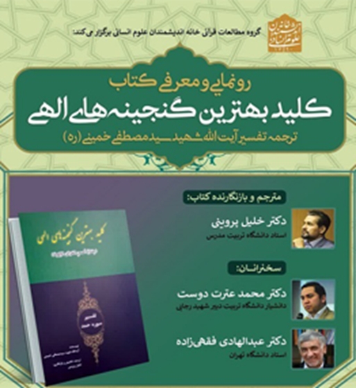 آیین رونمایی و معرفی کتاب «کلید بهترین گنجینه‌های الهی»، ترجمه‌ای از تفسیر مرحوم آیت‌الله سید مصطفی خمینی با ترجمه، تفسیر و بازنگاری دکتر خلیل پروینی، عضو هیات علمی دانشکده علوم انسانیِ دانشگاه تربیت‌ مدرس روز دوشنبه ۱۹ خرداد ۱۴۰۴ ساعت ۱۷ در سالن خیام خانه اندیشمندان علوم انسانی برگزار می‌شود.در این برنامه دکتر عبدالهادی فقهی‌زاده، استاد گروه علوم و قرآن و حدیث دانشگاه تهران و دکتر محمد عترت‌دوست، دانشیار گروه الهیات و معارف اسلامی دانشگاه شهید رجایی درباره ابعاد علمی و تفسیری این اثر سخنرانی خواهند کرد.گفتنی است این کتاب، ترجمه و بازخوانی بخش‌هایی از تفسیر گران سنگ «مفتاح احسن الخزائن الالهیة» اثر سید مصطفی خمینی است و این تفسیر گرچه تنها تا آیه ۴۵ سوره بقره ادامه یافته، اما از حیث عمق، گستره‌ی موضوعی و دقت‌های اجتهادی، از جامع‌ترین آثار تفسیری قرن اخیر محسوب می‌شود.مرحوم مصطفی خمینی در این اثر، با نگاهی چندجانبه و میان‌رشته‌ای، به تحلیل آیات قرآنی پرداخته و حوزه‌هایی چون لغت، نحو، بلاغت، فلسفه، عرفان، کلام، فقه، اخلاق، روایت، تاریخ نزول، علم حروف و اعداد و حتی اوفاق را در هم تنیده است تا تفسیری نوین و در عین حال ریشه‌دار در سنت اسلامی ارائه دهد.این اثر، همچنین نمایانگر تاثیر دو جریان مهم فکری ـ نهضت اصلاح علمی و رویکرد اجتماعی-تربیتی به قرآن ـ در تفسیرنگاری معاصر است.
