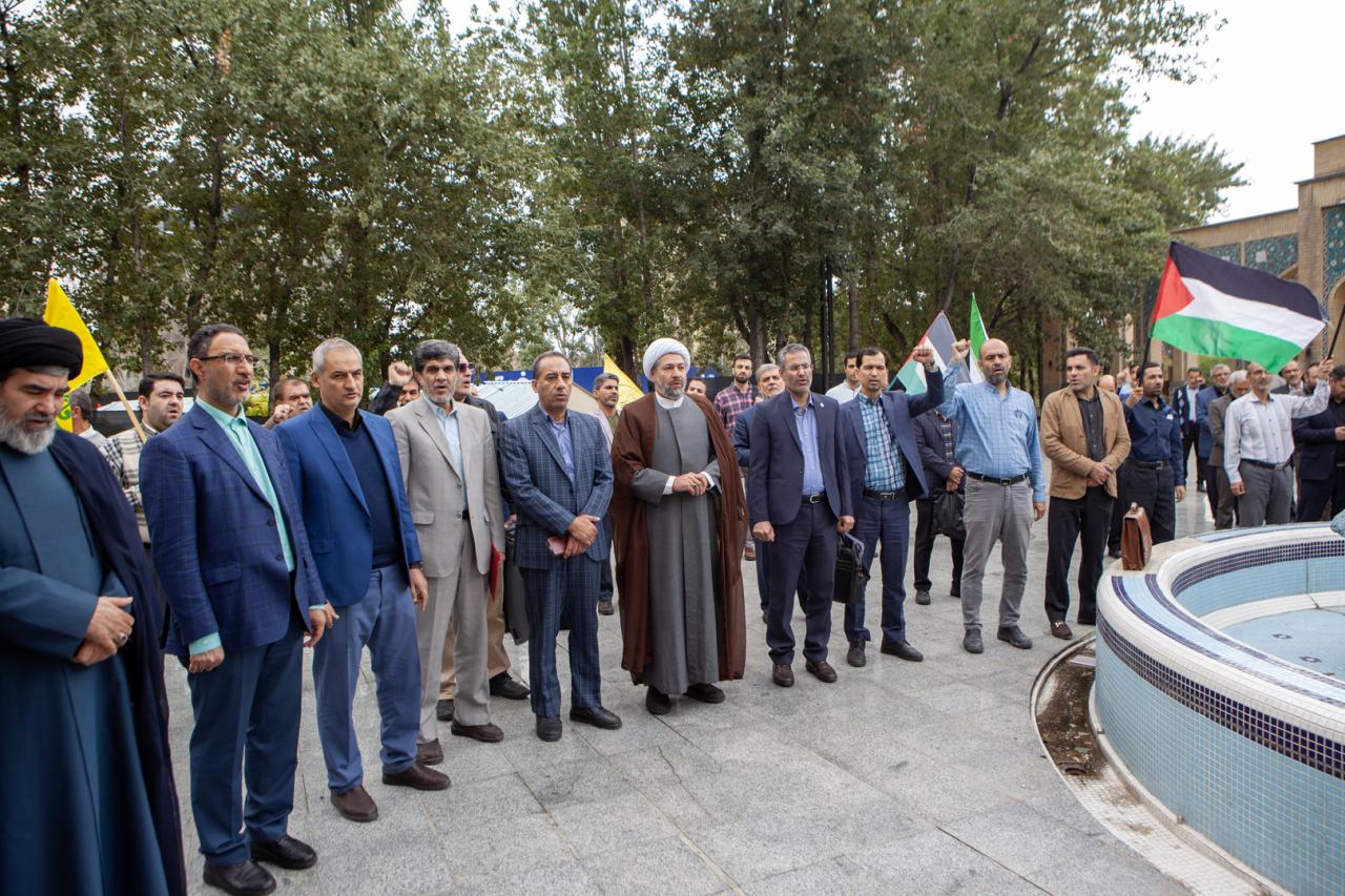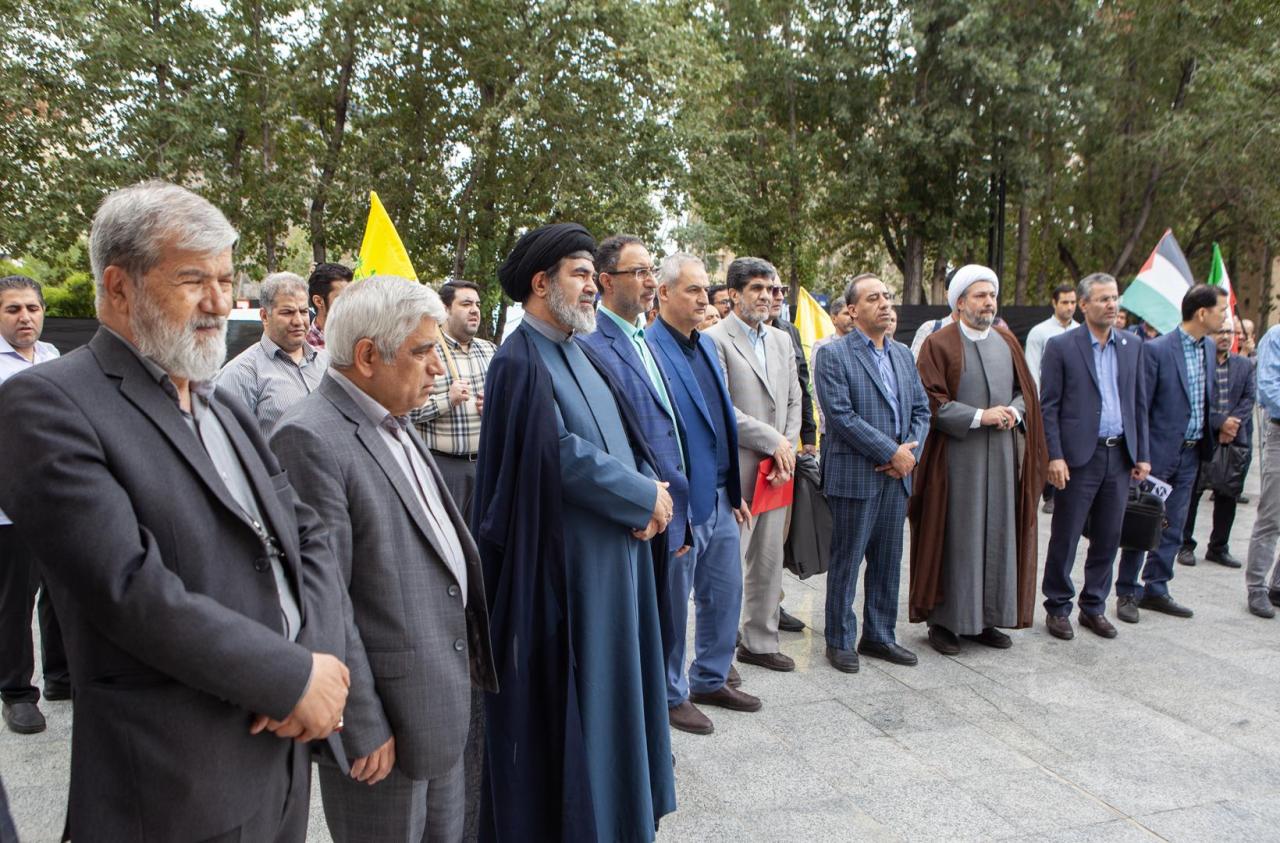 برگزاری تجمع دانشگاهیان تربیت مدرس در محکومیت جنایات صهیونیستی و شهادت دبیرکل حزب‌الله لبنان