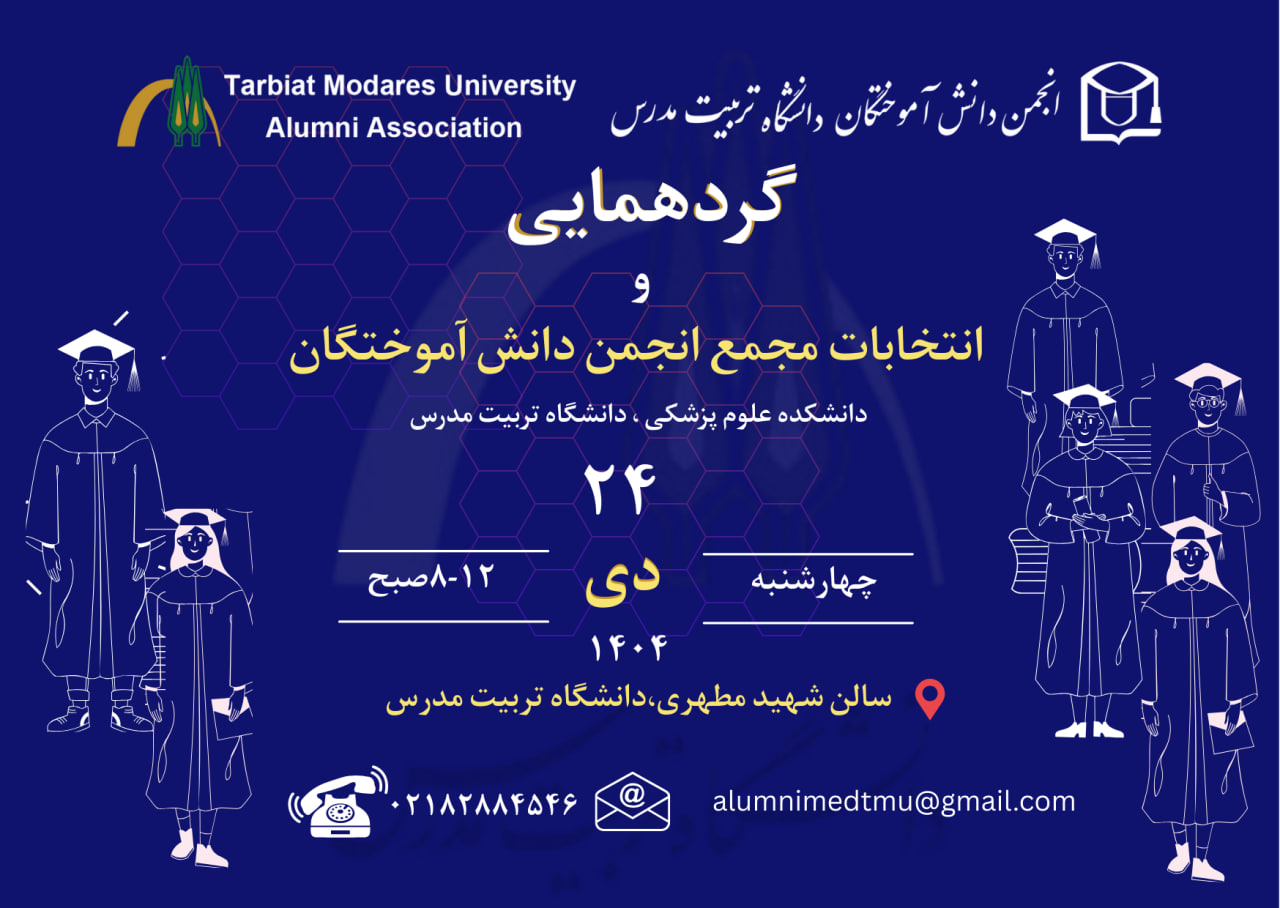 انجمن دانش‌آموختگان دانشگاه تربیت مدرس، گردهمایی و انتخابات مجمع انجمن دانش‌آموختگان دانشکده علوم پزشکی را روز چهارشنبه ۲۴ دیماه  از ساعت ۸ الی ۱۲ در سالن شهید مطهری دانشگاه تربیت مدرس برگزار می کند.