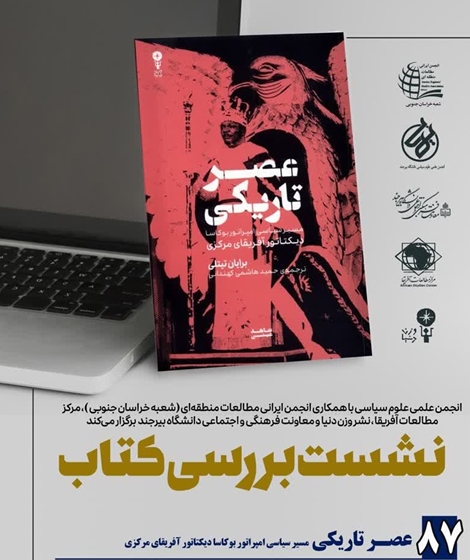 هشتاد و هفتمین نشست به بررسی کتاب عصر تاریکی (مسیر سیاسی امپراتور بوکاسا دیکتاتور آفریقای مرکزی) تألیف برایان تیتلی اختصاص دارد که با حضور دکتر احمد بخشی عضو هیأت علمی گروه علوم سیاسی دانشگاه بیرجند چهارشنبه 12 آذر ماه 1404 ساعت 19 تا 21 به صورت مجازی برگزار می‌شود.