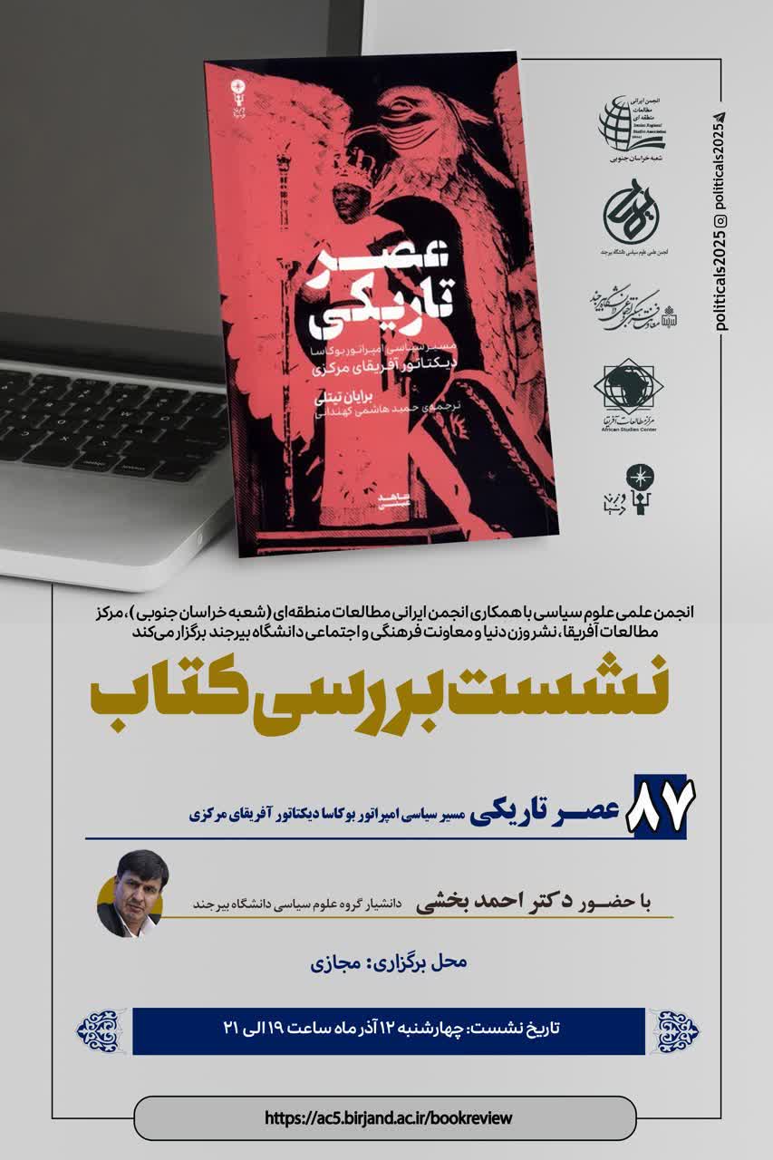 مرکز مطالعات آفریقا دانشگاه تربیت مدرس با همکاری انجمن ایرانی مطالعات منطقه‌ ای شعبه خراسان جنوبی، نشر وزن دنیا و معاونت فرهنگی و اجتماعی دانشگاه بیرجند هشتاد و هفتمین نشست نقد و بررسی کتاب را برگزار می‌کند.