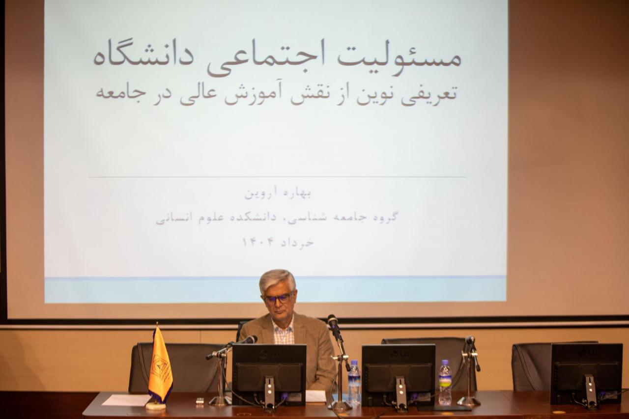این نشست با سخنرانی دکتر بهاره آروین (استاد جامعه شناسی) با عنوان «مسئولیت اجتماعی دانشگاه؛ تعریفی نوین از نقش آموزش عالی در جامعه» آغاز شد.وی در ابتدا به تعریف مسئولیت اجتماعی پرداخت و گفت: از آنجا که دانشگاه ها فراتر از نهادهای آموزشی و پژوهشی هستند، انتظار می رود در حل چالش های اجتماعی، اقتصادی و زیست محیطی مشارکت فعال داشته باشند. این مسئولیت با عنوان مسئولیت اجتماعی دانشگاه شناخته میشود. مسئولیت اجتماعی مجموعه ای از تعهدات داوطلبانه و آگاهانه دانشگاه به جامعه، محیط زیست و نسلهای آینده است.دکتر آروین افزود: مسئولیت اجتماعی به انجام اقداماتی در راستای حل مسائل جامعه و پاسخ به نیازهای عمومی گفته می شود که به صورت خود به خودی با ایفای نقش دولت، بازار یا جامعه مدنی به تنهایی قابل انجام نیست و در عین حال به صورت مستقیم در ذیل وظایف دانشگاه نیز قابل تعریف نیست و عدم انجام آن خدشه ای به دانشگاه وارد نمیکند.وی در ادامه اهداف اصلی مسئولیت اجتماعی دانشگاه را برشمرد و گفت: ارتقای آگاهی و مسئولیت پذیری اجتماعی در دانشجویان، انجام پژوهش های کاربردی برای حل مسائل جامعه، تعامل موثر با جامعه محلی و جهانی، پیشبرد عدالت، پایداری و اخلاق سازمانی، اهداف اصلی مسئولیت اجتماعی دانشگاه را تشکیل می دهند.دکتر آروین در تشریح عناصر کلیدی مسئولیت اجتماعی دانشگاه در عصر حاضر گفت: آموزش، پژوهش و تعامل اجتماعی، انتظار پاسخ گویی دانشگاه ها به بحران های جهانی، دانشگاهها و اعتماد عمومی به دانشگاهها از جمله عناصر کلیدی مسئولیت اجتماعی دانشگاه در عصر حاضر است. همچنین اینکه دانشگاه ها همواره به عنوان مراکز تولید فکر و تغییر اجتماعی نقش کلیدی دارند. مسئولیت اجتماعی دانشگاه یعنی اینکه، دانشگاه نه تنها با آموزش و پژوهش وظیفه تولید دانش دارد بلکه در عصر حاضر یک بعد سوم نیز پیدا کرده و باید دانش تولید شده را به کار گیرد.وی از مسئولیت اجتماعی به عنوان پلی بین جامعه و دانشگاه نام برد و افزود: اقدامات زیر مجموعه مسئولیت اجتماعی می تواند در قالب برنامه های خدمات اجتماعی و داوطلبانه، آموزش و پژوهش در راستای توسعه پایدار، همکاری با جامعه محلی، سیاست های محیط زیستی، عدالت-تنوع و فراگیری انجام شود.عضو هیأت علمی دانشگاه در خصوص سابقه بحث مسئولیت اجتماعی در دانشگاه تربیت مدرس گفت: طرحی با عنوان «شاخص های تأثیر اجتماعی؛ آموزش و پرورش مسئولانه» در دانشکده علوم انسانی انجام شد و طی آن ۳ دسته شاخص تعریف گردید که عبارتند از: مسئولیت اجتماعی دانشگاه در قبال اعضای خود، مسئولیت اجتماعی دانشگاه در قبال دولت و مسئولیت اجتماعی دانشگاه در قبال جامعه. بررسی این ۳ شاخص نشان داد که مسئولیت اجتماعی دانشگاه در قبال جامعه کم رنگ تر بوده است.دکتر آروین اضافه کرد: بنابراین محل تمرکز فعالیت های جدید می تواند در زمینه ارتباط مستقیم با جامعه (همکاری با جامعه محلی)، تلاش در جهت افزایش عدالت، تنوع و فراگیری، سیاست های محیط زیست باشد. مسئولیت اجتماعی اولویت پنجم طرح تحول راهبردی است و چشم انداز دانشگاه این است که دانشگاه تربیت مدرس به الگوی ایفای نقش مسئولیت اجتماعی دانشگاه ها تبدیل شود.وی در ادامه برخی اقدامات مرتبط با کاهش نابراری اجتماعی، اقتصادی، فرهنگی، اقدامات مرتبط با برنامه های خدمات اجتماعی و داوطلبانه، اقدامات مرتبط با همکاری با جامعه محلی را تشریح کرد و بر اقدام مرتبط با ارزیابی مستمر مسئولیت اجتماعی و انتشار گزارش منظم و سالانه در مورد ایفای نقش مسئولیت اجتماعی مشابه گزارش CSR شرکت ها تأکید کرد.دکتر آروین در توضیح فرایند پیشنهادی پیشبرد کار اظهار داشت: تدوین نسخه اولیه سند مسئولیت اجتماعی شامل تعریف، هدف گذاری ۶ ماهه، شاخص سازی و تعیین مسئولیت واحدهای اجرایی در پیشبرد اجرای سند تا پایان تابستان سال جاری و پس از آن اجرای آزمایشی سند تدوین شده در ۶ ماهه دوم سال جاری و اصلاح و بازنویسی سند مسئولیت اجتماعی جها ارائه به برنام