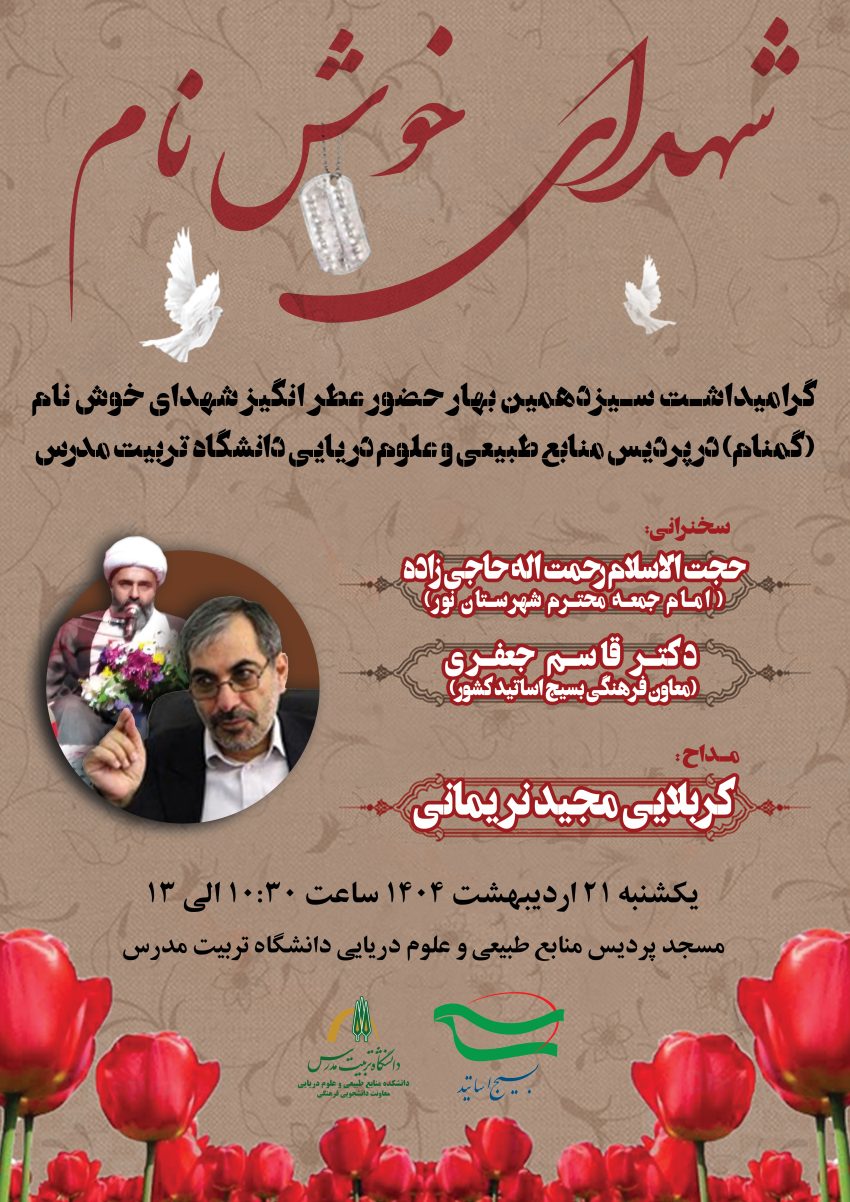 مراسم سیزدهمین سالگرد خاکسپاری شهدای گمنام دانشکده منابع طبیعی و علوم دریایی نور ۲۱ اردیبهشت ماه برگزار می شود.