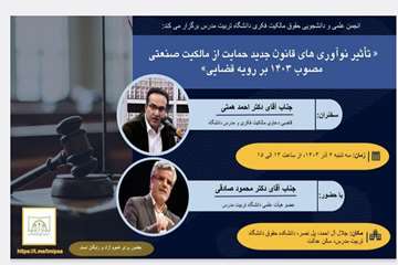 انجمن علمی دانشجویی حقوق مالکیت فکری دانشگاه نشست «تأثیر نوآوریهای قانون جدید حمایت از مالکیت صنعتی مصوب ۱۴۰۳ بر رویه قضایی» را با سخنرانی دکتر احمد همتی و دکتر محمود صادقی، ساعت ۱۳ روز سه شنبه ۶ آذرماه جاری در سالن عدالت دانشکده حقوق برگزار میکند.