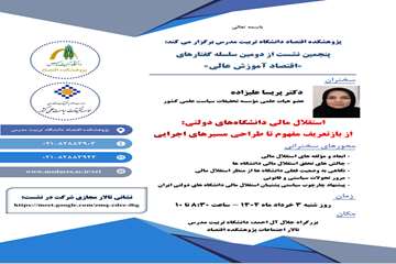 پنجمین نشست از دومین دوره سلسله گفتارهای «اقتصاد آموزش عالی» با عنوان «استقلال مالی دانشگاه های دولتی: از بازتعریف مفهوم تا طراحی مسیرهای اجرایی» سوم خرداد 1404 برگزار می شود.