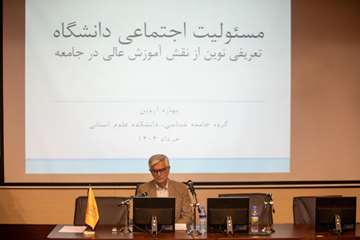 این نشست با سخنرانی دکتر بهاره آروین (استاد جامعه شناسی) با عنوان «مسئولیت اجتماعی دانشگاه؛ تعریفی نوین از نقش آموزش عالی در جامعه» آغاز شد.وی در ابتدا به تعریف مسئولیت اجتماعی پرداخت و گفت:  از آنجا که دانشگاه ها فراتر از نهادهای آموزشی و پژوهشی هستند، انتظار می رود در حل چالش های اجتماعی، اقتصادی و زیست محیطی مشارکت فعال داشته باشند. این مسئولیت با عنوان مسئولیت اجتماعی دانشگاه شناخته می‌شود. مسئولیت اجتماعی مجموعه ای از تعهدات داوطلبانه و آگاهانه دانشگاه به جامعه، محیط زیست و نسل‌های آینده است.دکتر آروین افزود: مسئولیت اجتماعی به انجام اقداماتی در راستای حل مسائل جامعه و پاسخ به نیازهای عمومی گفته می شود که به صورت خود به خودی با ایفای نقش دولت، بازار  یا جامعه مدنی به تنهایی قابل انجام نیست و در عین حال به صورت مستقیم در ذیل وظایف دانشگاه نیز قابل تعریف نیست و عدم انجام آن خدشه ای به دانشگاه وارد نمی‌کند.وی در ادامه اهداف اصلی مسئولیت اجتماعی دانشگاه را برشمرد و گفت: ارتقای آگاهی و مسئولیت پذیری اجتماعی در دانشجویان، انجام پژوهش های کاربردی برای حل مسائل جامعه‌، تعامل موثر با جامعه محلی و جهانی، پیشبرد عدالت، پایداری و اخلاق سازمانی، اهداف اصلی مسئولیت اجتماعی دانشگاه را تشکیل می دهند.دکتر آروین در تشریح عناصر کلیدی مسئولیت اجتماعی دانشگاه در عصر حاضر گفت: آموزش، پژوهش و تعامل اجتماعی، انتظار پاسخ گویی دانشگاه ها به بحران های جهانی، دانشگاه‌ها  و اعتماد عمومی به  دانشگاه‌ها از جمله عناصر کلیدی مسئولیت اجتماعی دانشگاه در عصر حاضر است. همچنین اینکه دانشگاه ها همواره به عنوان مراکز تولید فکر و تغییر اجتماعی نقش کلیدی دارند. مسئولیت اجتماعی دانشگاه یعنی اینکه، دانشگاه نه تنها با آموزش و پژوهش وظیفه تولید دانش دارد بلکه در عصر حاضر یک بعد سوم نیز پیدا کرده و باید دانش تولید شده را به کار گیرد.وی از مسئولیت اجتماعی به عنوان پلی بین جامعه و دانشگاه نام برد و افزود: اقدامات زیر مجموعه مسئولیت اجتماعی می تواند در قالب برنامه های خدمات اجتماعی و داوطلبانه، آموزش و پژوهش در راستای توسعه پایدار، همکاری با جامعه محلی، سیاست های محیط زیستی، عدالت-تنوع و فراگیری انجام شود.عضو هیأت علمی دانشگاه در خصوص سابقه بحث مسئولیت اجتماعی در دانشگاه تربیت مدرس گفت: طرحی با عنوان «شاخص های تأثیر اجتماعی؛ آموزش و پرورش مسئولانه» در دانشکده علوم انسانی انجام شد و طی آن ۳ دسته شاخص تعریف گردید که عبارتند از: مسئولیت اجتماعی دانشگاه در قبال اعضای خود، مسئولیت اجتماعی دانشگاه در قبال دولت و مسئولیت اجتماعی دانشگاه در قبال جامعه. بررسی این ۳ شاخص نشان داد که مسئولیت اجتماعی دانشگاه در قبال جامعه کم رنگ تر بوده است.دکتر آروین اضافه کرد: بنابراین محل تمرکز فعالیت های جدید می تواند در زمینه ارتباط مستقیم با جامعه (همکاری با جامعه محلی)، تلاش در جهت افزایش عدالت، تنوع و فراگیری، سیاست های محیط زیست باشد. مسئولیت اجتماعی اولویت پنجم طرح تحول راهبردی است و چشم انداز دانشگاه این است که دانشگاه تربیت مدرس به الگوی ایفای نقش مسئولیت اجتماعی دانشگاه ها تبدیل شود.وی در ادامه برخی اقدامات مرتبط با کاهش نابراری اجتماعی، اقتصادی، فرهنگی، اقدامات مرتبط با برنامه های خدمات اجتماعی و داوطلبانه، اقدامات مرتبط با همکاری با جامعه محلی را تشریح کرد و بر اقدام مرتبط با ارزیابی مستمر مسئولیت اجتماعی و انتشار گزارش منظم و سالانه در مورد ایفای نقش مسئولیت اجتماعی مشابه گزارش CSR شرکت ها تأکید کرد.دکتر آروین در توضیح فرایند پیشنهادی پیشبرد کار اظهار داشت: تدوین نسخه اولیه سند مسئولیت اجتماعی شامل تعریف، هدف گذاری ۶ ماهه، شاخص سازی و تعیین مسئولیت واحدهای اجرایی در پیشبرد اجرای سند تا پایان تابستان سال جاری و پس از آن اجرای آزمایشی سند تدوین شده در ۶ ماهه دوم سال جاری و اصلاح و بازنویسی سند مسئولیت اجتماعی جه