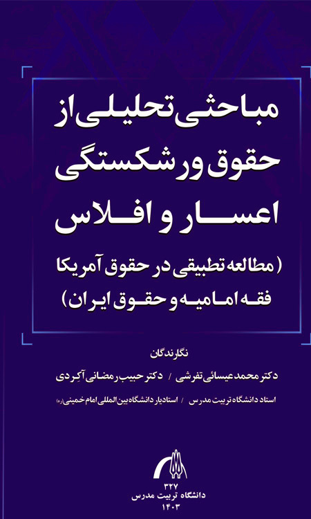 کتاب «مباحثی تحلیلی از حقوق ورشکستگی اعسار و افلاس (مطالعه تطبیقی در حقوق آمریکا فقه امامیه و حقوق ایران»، تألیف دکتر محمد عیسائی تفرشی و دکتر حبیب رمضانی آکردی از سوی مرکز نشر آثار علمی دانشگاه تربیت مدرس منتشر شد.