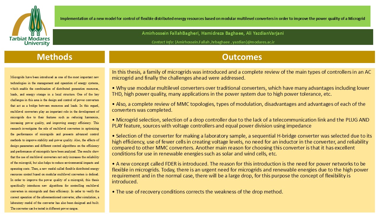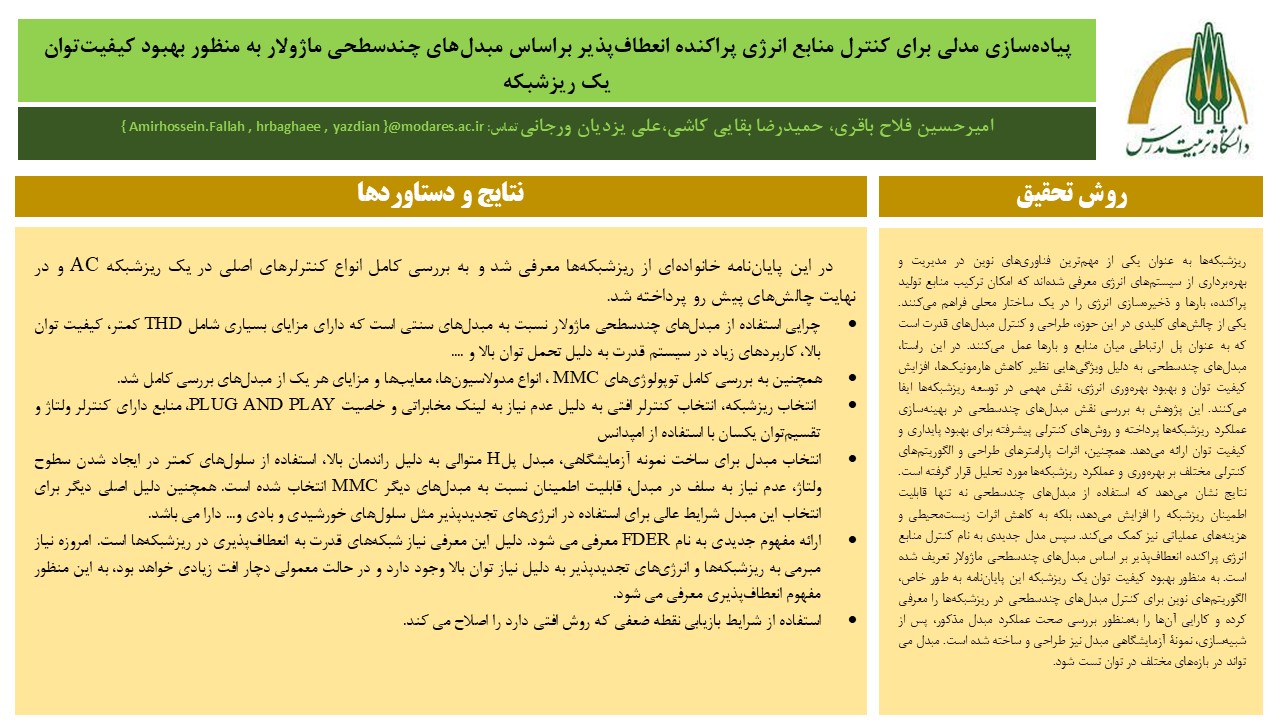 عنوان پایاننامه: پیادهسازی مدلی برای کنترل منابع انرژی پراکنده انعطافپذیر براساس مبدلهای چندسطحی ماژولار به منظور بهبود کیفیتتوان یک ریزشبکه