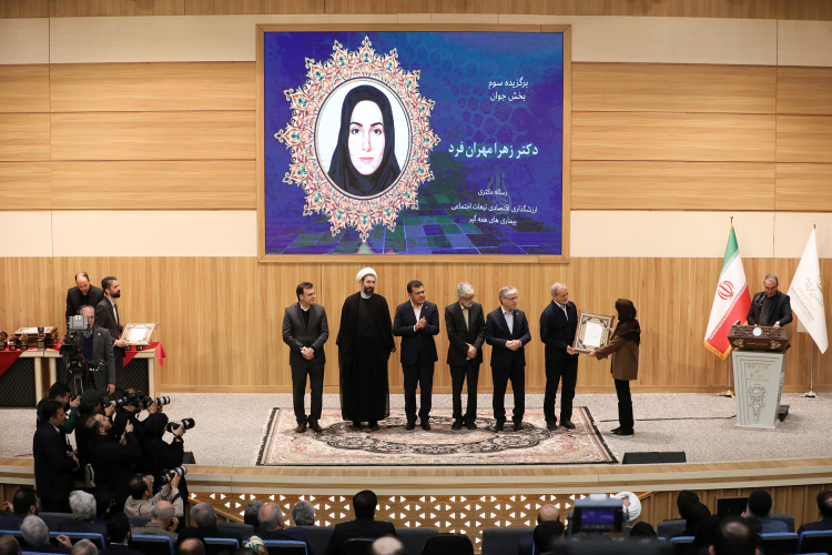 در این مراسم زهرا مهران فرد دانش آموخته دکتری علوم اقتصادی دانشگاه تربیت مدرس به عنوان برگزیده سوم بخش جوان گروه علوم اقتصادی شانزدهمین جشنواره بین المللی فارابی با عنوان رساله دکتری "ارزشگذاری اقتصادی تبعات اجتماعی بیماری های همه گیر" به راهنمایی دکتر امیرحسین مزینی معرفی و تقدیر شد.