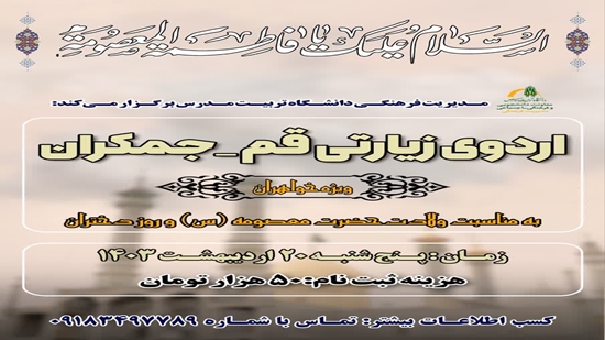 مدیریت فرهنگی دانشگاه تربیت مدرس به مناسبت سالروز ولادت حضرت معصومه(س) و روز دختران اردوی زیارتی قم- جمکران (ویژه خواهران) برگزار می‌کند.