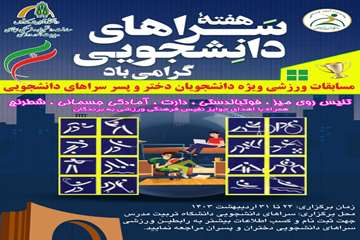 مدیریت امور ورزشی دانشگاه به مناسبت گرامیداشت هفته سراهای دانشجویی، مسابقات ورزشی ویژه دانشجویان دختر و پسر خوابگاهی برگزار می‌کند.