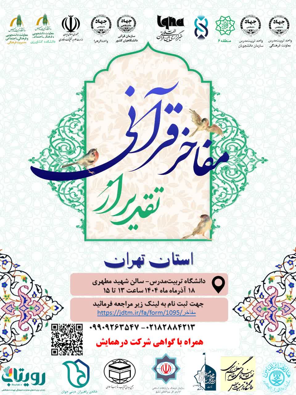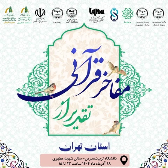 «همایش تقدیر از مفاخر قرآنی استان تهران» سه‌شنبه ۱۸ آذرماه ساعت ۱۳ تا ۱۵ در سالن شهید مطهری دانشگاه تربیت مدرس برگزار می شود.