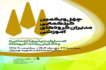 معاونت آموزشی دانشگاه، چهل و یکمین گردهمایی مدیران گروههای آموزشی دانشگاه با محورهای بحث، مسئولیتپذیری اجتماعی و آمایش رشته/گروهها را ۲۲ دی ماه برگزار میکند.