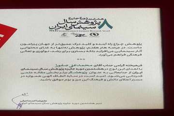 اختتامیه هشتمین دوره جایزه پژوهش سال سینمای ایران، پنجم بهمن ماه 1404 در تالار رودکی برگزار و طی آن از برگزیدگان بخش های کتابی تالیفی و ترجمه، پایان نامه ها و مقالات علمی با اهداء جوایز تقدیر شد.