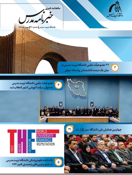 در این شماره می خوانید: ۳۴ عضو هیأت علمی دانشگاه تربیت مدرس در میان یک درصد دانشمندان پراستناد جهان / عضو هیات علمی دانشگاه تربیت مدرس به عنوان سرآمد آموزشی کشور انتخاب شد/ چهارمین همایش ملی دانشگاه سبز برگزار شد/ دانشکده علوم پزشکی دانشگاه تربیت مدرس در جمع برترین‌های رتبه‌بندی تایمز ۲۰۲۶