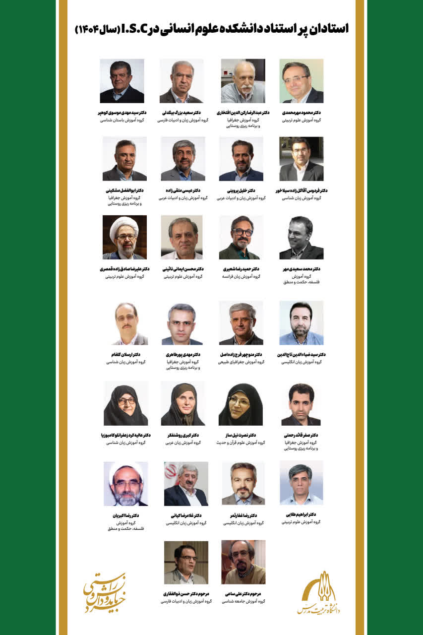 بر پایه دادههای منتشرشده مؤسسه استنادی و پایش علم و فناوری جهان اسلام (ISC)، اساتید دانشکده علوم انسانی دانشگاه تربیت مدرس که به عنوان پژوهشگران پراستناد در سال ۱۴۰۴ معرفی شده اند، به شرح زیر است.