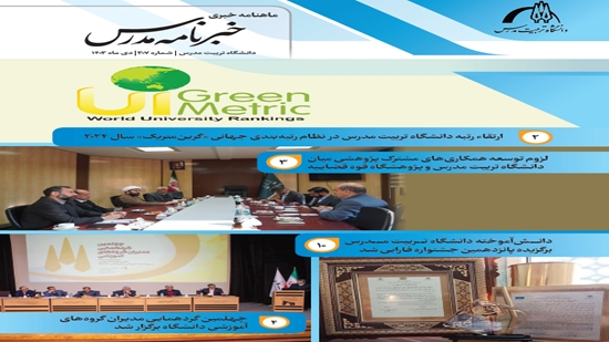 در این شماره می خوانید: ارتقاء رتبه دانشگاه تربیت مدرس در نظام رتبه‌بندی جهانی «گرین‌متریک» سال 2024 / تأکید بر توسعه همکاری های مشترک پژوهشی میان دانشگاه تربیت مدرس و پژوهشگاه قوه قضاییه/ دانش آموخته دانشگاه تربیت مدرس برگزیده پانزدهمین جشنواره فارابی شد/ چهلمین گردهمایی مدیران گروه های آموزشی دانشگاه برگزار شد