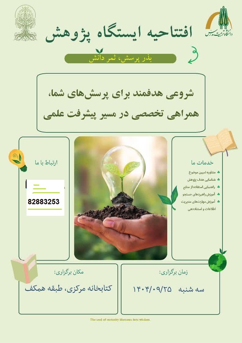 کتابخانه مرکزی دانشگاه، همراه با مشاوران اطلاعاتی در «ایستگاه پژوهش»، در کنار شما هستند و فرصتی برای همه پژوهشگران، دانشجویان و علاقه‌مندان ایجاد می‌کنند تا مسیر انجام پژوهش را بار دیگر با هم مرور کنند. در این رویداد، موضوع‌هایی از قبیل مهارت‌های جستجو، استناددهی و مدیریت اطلاعات طرح می‌شود و علاقمندان از مشاوره اطلاعاتی متخصصان این حوزه در انتخاب موضوع، استفاده از منابع و ... بهره‌مند می‌شوند.