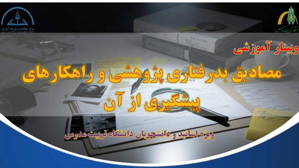 مرکز مطالعات و توسعه آموزش دانشکده علوم پزشکی (EDC) دانشگاه کارگاه اخلاق در پژوهش با عنوان «مصادیق بدرفتاری پژوهشی و راهکارهای پیشگیری از آن»  ویژه اعضای هیأت علمی و دانشجویان دانشگاه تربیت مدرس را با ارائه دکتر رضا عمانی سامانی روز شنبه ۱۱ بهمن ماه جاری از ساعت ۱۴ تا ۱۶ به صورت مجازی برگزار می کند.