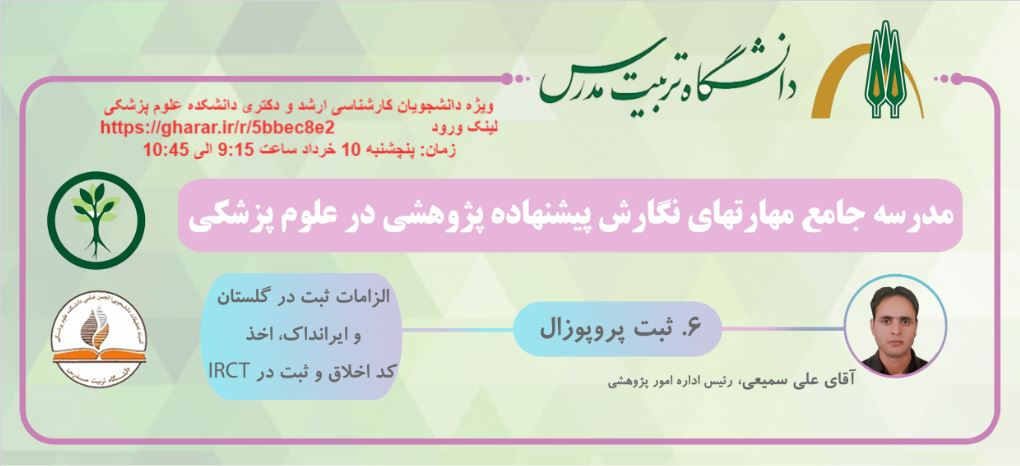 کارگاه «مهارت های نگارش پیشنهاده (پروپوزال) پژوهشی در رشته های علوم پزشکی» 10 خرداد 1403 برگزار می شود.