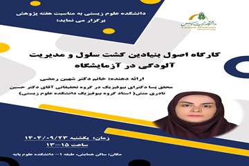به مناسبت هفته پژوهش کارگاه آموزشی «اصول بنیادین کشت سلول و مدیریت آلودگی در آزمایشگاه» ۲۳ آذر برگزار می شود.