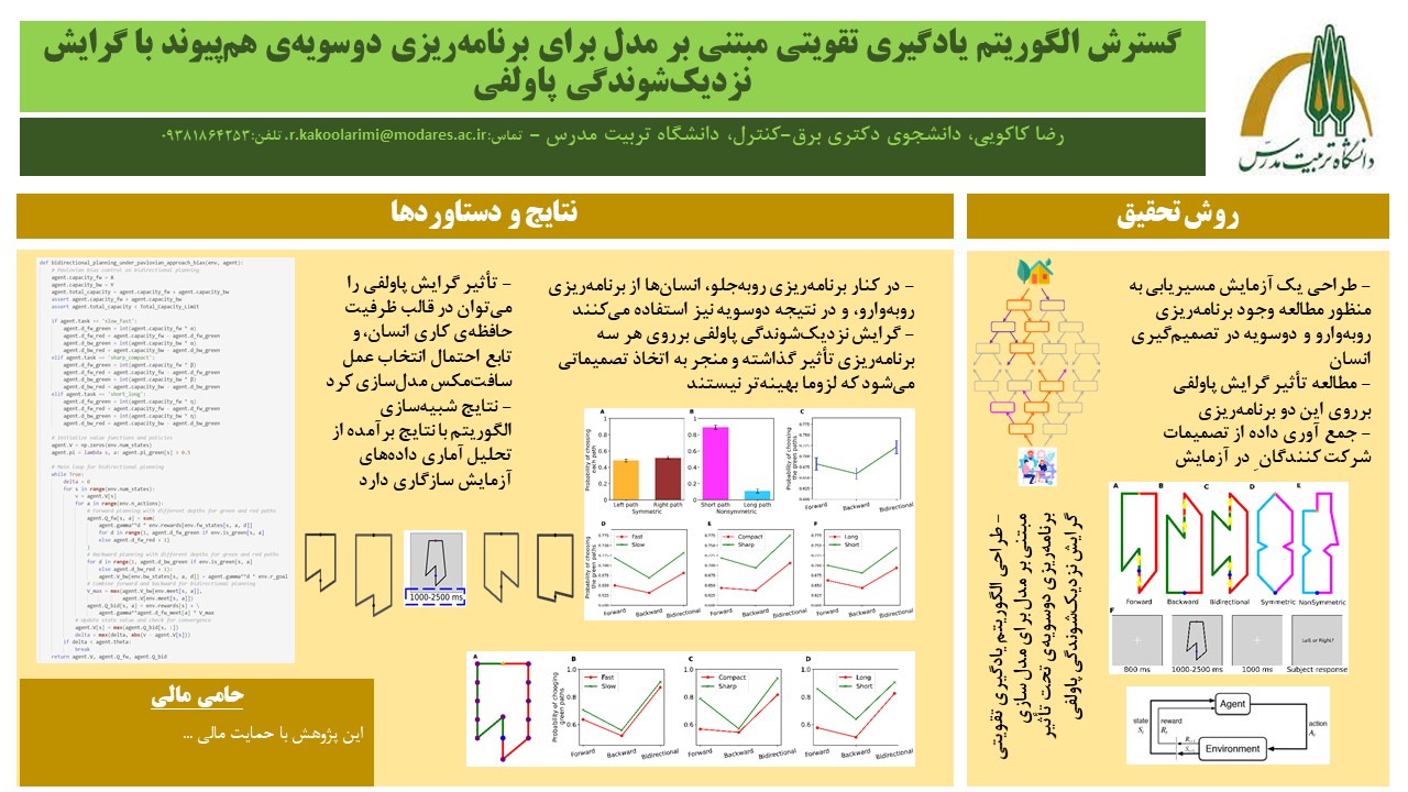 عنوان رساله: گسترش الگوریتم یادگیری تقویتی مبتنی بر مدل برای برنامهریزی دوسویه همپیوند با گرایش نزدیکشوندگی پاولفی
