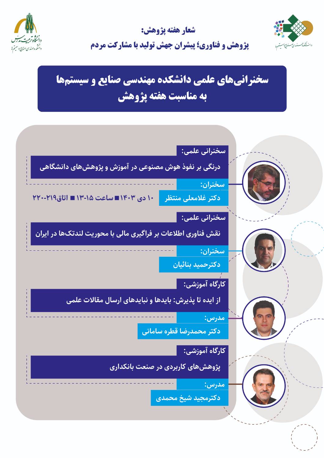 • گروه خبری : پژوهشی,هفته پژوهش,حوزه دانشکده مهندسی صنایع و سیستم‌ها