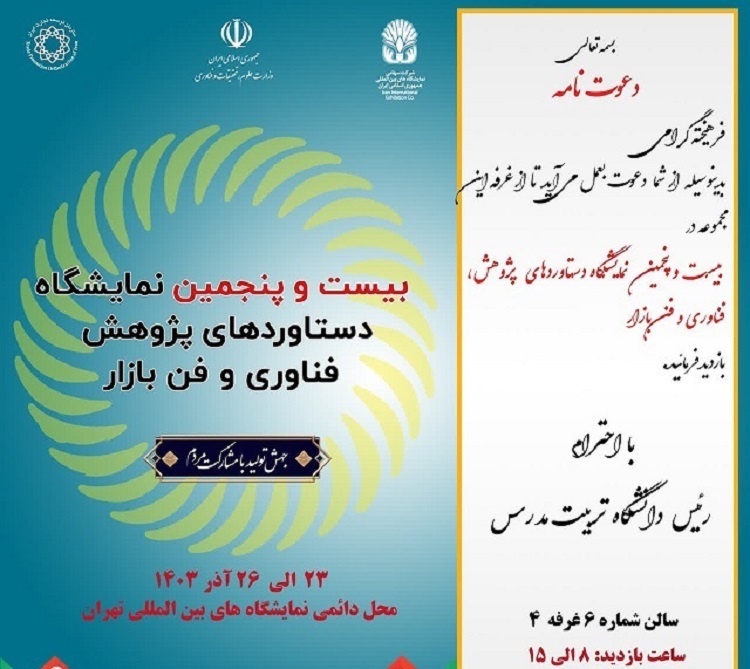 دانشگاه تربیت مدرس در بیست و پنجمین نمایشگاه بین‌المللی دستاوردهای پژوهش فناوری و فن بازار با ارائه دستاوردهای پژوهشی و فناوری حضوری فعال داشته است.