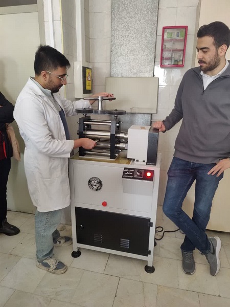 ۶. آزمایشگاه فرآوری مواد:در این آزمایشگاه، فرآیند ریخته گری قلع به صورت عملی به نمایش درآمد. نمونه های ذوب شده با دمای ۴۵۰ درجه در قالب ریخته شده و پس از سرد شدن، مراحل نورد انجام گرفت.