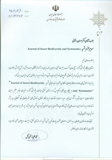 نشست سردبیران و مدیران مسئول نشریات علمی کشور در تاریخ ۹ تیرماه با حضور دکتر محمد‌ علی زلفی‌ گل وزیر علوم، تحقیقات و فناوری در دانشگاه شهید بهشتی تهران برگزار شد. در این نشست از نشریه‌های   Journal of Insect Biodiversity and Systematics     و علوم صنایع غذایی دانشگاه تربیت مدرس   به عنوان نشریات دارای نمایه بین المللی اسکوپوس تقدیر به عمل آمد.
