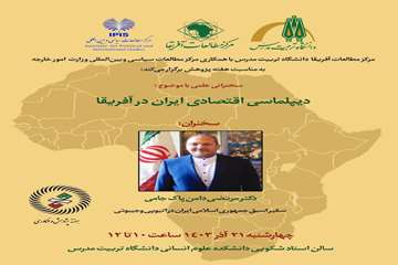 مرکز مطالعات آفریقا دانشگاه تربیت مدرس با همکاری مرکز مطالعات سیاسی و بین المللی وزارت امور خارجه، ۲۱ آذر ماه جاری جلسه سخنرانی با عنوان دیپلماسی اقتصادی ایران در آفریقا را برگزار می کند.