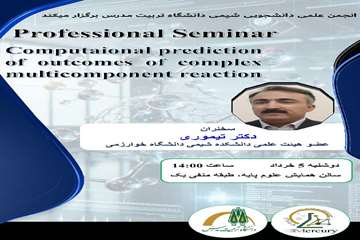 سخنرانی دکتر محمدباقر تیموری، استاد شیمی آلی دانشگاه خوارزمی، تحت عنوان Computaional prediction of outcomes of complex multicomponent reactionروز دوشنبه ۵ خرداد ۱۴۰۴ در دانشگاه تربیت مدرس برگزار میشود.