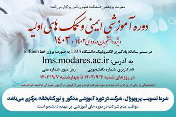 دوره آموزشی ایمنی و کمکهای اولیه ویژه دانشجویان ورودی 1402 و 1403 دانشکده علوم ریاضی در بستر سامانه LMS برگزار می شود.