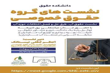 به همت انجمن علمی حقوق خصوصی نشست حقوق آب،با موضوع طرق حل و فصل اختلافات مطروحه در این حوزه دوشنبه ۲۹ اردیبهشت ۱۴۰۴ از ساعت ۱۸ تا ۱۹:۳۰ به صورت مجازی برگزار می شود.