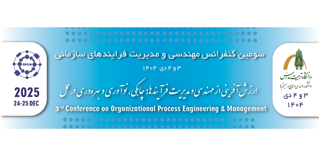 سومین کنفرانس مهندسی و مدیریت فرآیندهای سازمانی با شعار «ارزش‌آفرینی از مهندسی و مدیریت فرایندها: چابکی، نوآوری و بهره‌وری در عمل»  توسط دانشکده مهندسی صنایع و سیستم‌های دانشگاه تربیت مدرس و همکاری دبیرخانه دائمی کنفرانس مهندسی و فرایندهای سازمانی با حضور فعال بخش‌های دولتی و خصوصی طی دو روز با ارائه مقالات علمی، برگزاری نشست‌های تخصصی، کارگاه‌های کاربردی و انتقال تجارب موفق و برپایی نمایشگاه‌ها، برگزار می شود. بنا بر اعلام دبیرخانه کنفرانس، سومین کنفرانس مهندسی و مدیریت فرآیندهای سازمانی حول محورهای اصلی شامل: چارچوب‌ها، استانداردها و ابزارهای مهندسی و مدیریت فرایندهای سازمانی- مدیریت کیفیت و بهبود مستمر فرایندها- یکپارچه‌سازی فرایندهای سازمانی- مدیریت ریسک در فرایندهای سازمانی- مدل‌ها و تکنیک‌های بهینه‌سازی و شبیه‌سازی فرایندها- تحول دیجیتال، فناوری اطلاعات و هوشمندسازی فرایندهای سازمانی- مهندسی و مدیریت فرایندها در زنجیره تأمین- مهندسی و مدیریت فرایندها در سیستم‌های سلامت- مهندسی و مدیریت فرایندهای مالی، بانکی و بیمه- تجارب موفق در مهندسی و مدیریت فرایندهای سازمانی برگزار می شود. ارکان کنفرانس را دکتر کامران رضایی (رئیس شورای خبرگان سرآمد)، دکتر محمد مهدی سپهری (رئیس کنفرانس و رئیس شورای سیاست‌گذاری و اجرایی)، دکتر بختیار استادی (دبیر علمی) و دکتر حمید بنائیان (دبیر اجرایی) تشکیل می دهند.گفتنی است سایت کنفرانس هم اکنون پذیرای دریافت مقالات پژوهشگران است. پس از دریافت هر مقاله، فرآیند داوری آن شروع شده و نتیجه داوری و صدور گواهی پذیرش (در صورت پذیرش مقاله) ظرف مدت حداکثر یکماه به نویسندگان انعکاس داده می شود.