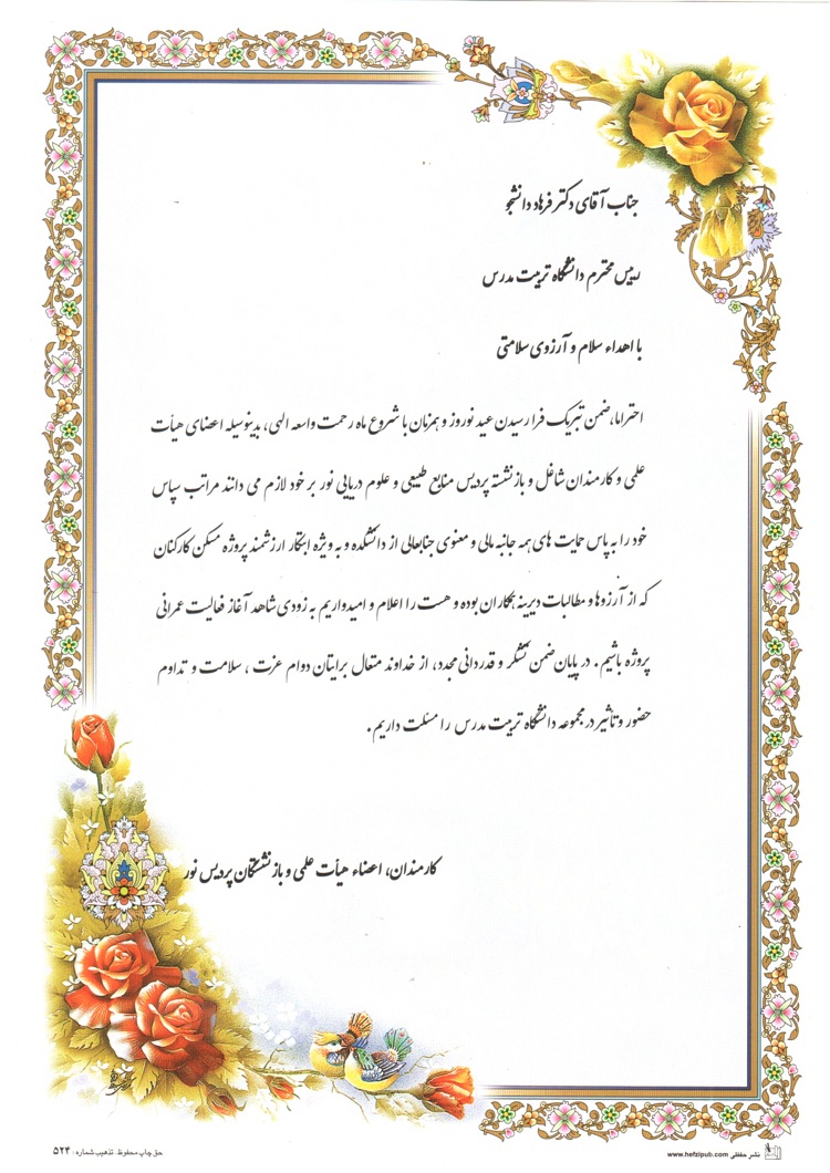 اعضای هیأت علمی و کارمندان شاغل و بازنشسته پردیس منابع طبیعی و علوم دریایی نور با تقدیم لوح سپاس از دکتر فرهاد دانشجو رئیس دانشگاه حمایت و تقدیر کردند.