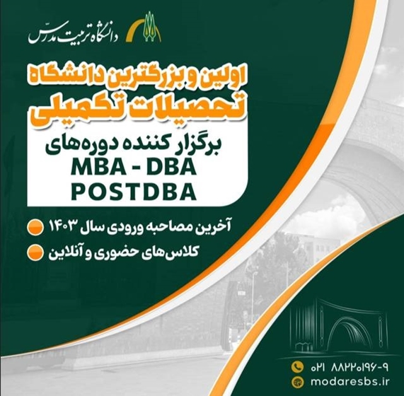 دفتر آموزش‌های آزاد دانشگاه تربیت مدرس، دوره‌های مدیریت کسب و کار (MBA، DBA و PostDBA) را برگزار می‌کند. برای اطلاعات بیشتر به سامانه  el. modares. ac. ir مراجعه نمایید.