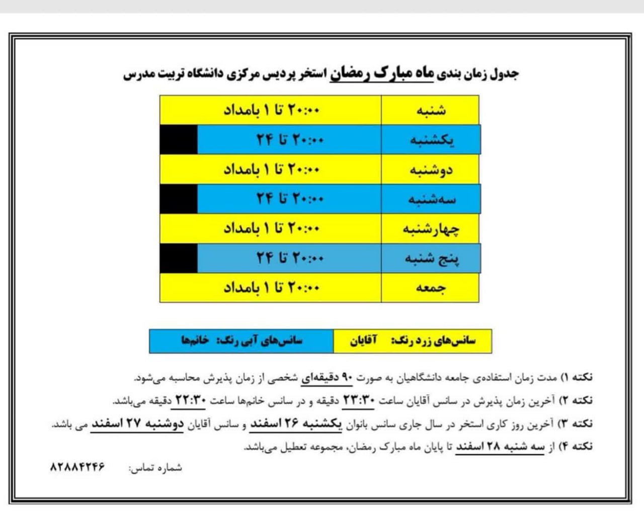 اعلام زمانبندی استخرهای دانشگاه در ماه مبارک رمضان