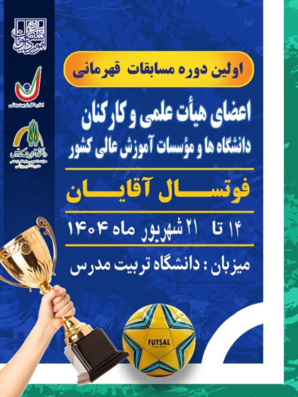 اولین دوره مسابقات قهرمانی فوتسال اعضای هیأت علمی و کارکنان آقایان دانشگاه ها و مؤسسات آموزش عالی کشور در روزهای 14 تا 21 شهریور 1404 به میزبانی دانشگاه تربیت مدرس در سالن ورزشی شماره یک این دانشگاه برگزار میشود.