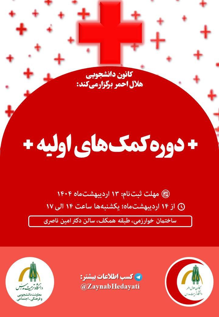 کانون فرهنگی جمعیت هلال احمر دانشگاه تربیت مدرس دوره آموزشی کمک‌های اولیه برگزار می‌کند.