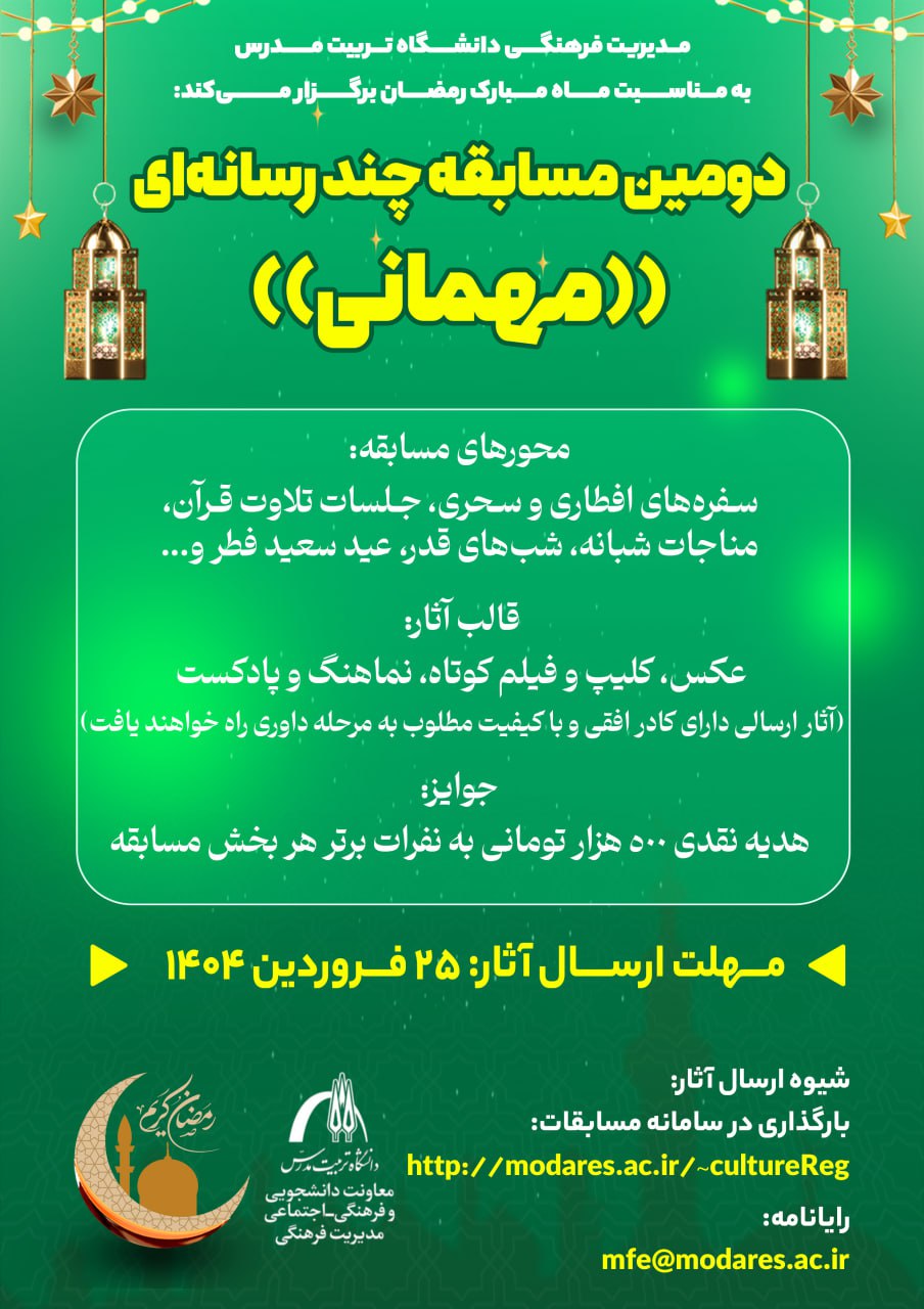 مدیریت فرهنگی دانشگاه تربیت مدرس به مناسبت ماه مبارک رمضان دومین مسابقه چند رسانهای «مهمانی» را برگزار میکند.