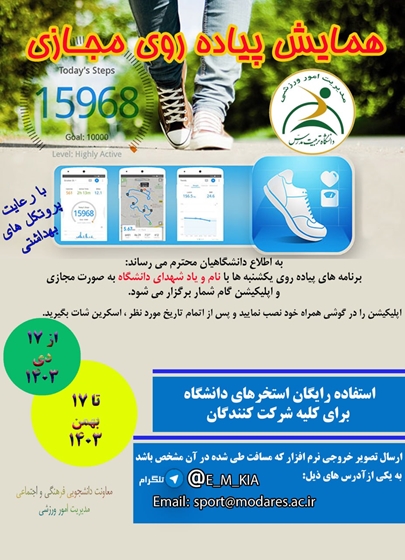 مدیریت امور ورزشی دانشگاه قصد دارد برنامه‌های پیاده‌روی یکشنبه‌ها با نام و یاد شهدای دانشگاه را به صورت مجازی برگزار نماید.