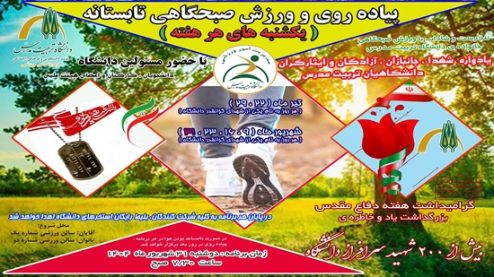 پیاده روی و ورزش صبحگاهی تابستانه دانشگاهیان تربیت مدرس به مناسبت گرامیداشت هفته دفاع مقدس برگزار می شود.
