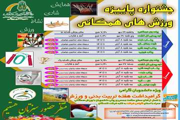 شعار این جشنواره که روز سه شنبه ۸ آبان از ساعت ۱۱ تا ۱۴ برگزار خواهد شد « ارتقای سطح سلامت جسمی و روانی دانشجویان با ورزش همگانی» می باشد. به شرکت کنندگان گواهی حضور و به برترین ها جایزه داده می شود. محل برگزاری مسابقات بانوان: محوطه سلف غذاخوری خواهرانمحل برگزاری مسابقات آقایان: محوطه سلف غذا خوری برادران یا جنب روابط عمومی