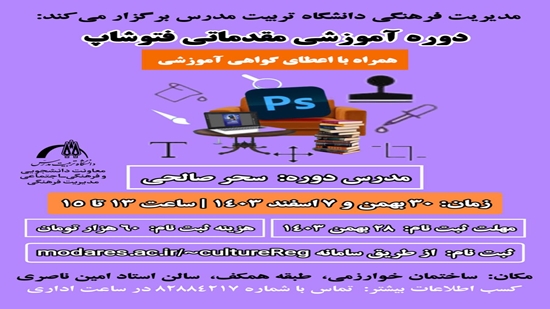 مدیریت فرهنگی دانشگاه تربیت مدرس دوره آموزشی مقدماتی فتوشاپ برگزار می‌کند.