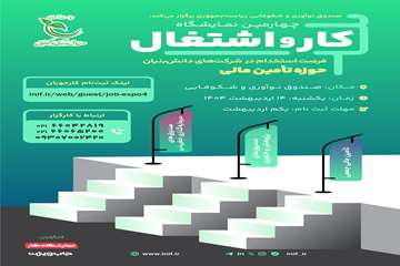 «چهارمین نمایشگاه تخصصی کار و اشتغال» ویژه شرکت‎‌های دانش‎‌‌بنیان حوزه تامین مالی، اول اردیبهشت ماه 1404 برگزار می شود.