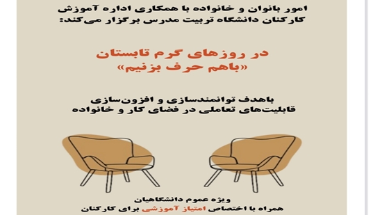 امور بانوان و خانواده با همکاری اداره آموزش کارکنان دانشگاه تربیت مدرس سلسله نشست‌های «با هم حرف بزنیم» را برگزار میکند.
